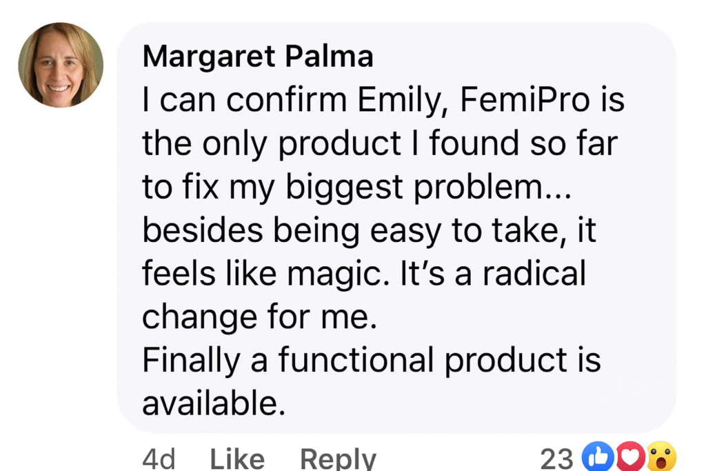 Rita’s Facebook post sparked hundreds of responses from women sharing their own FemiPro experiences: