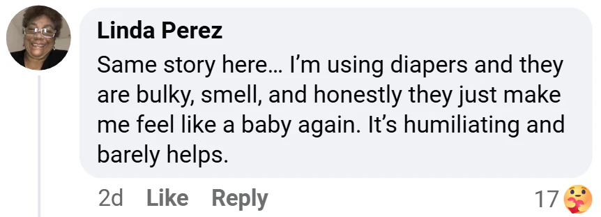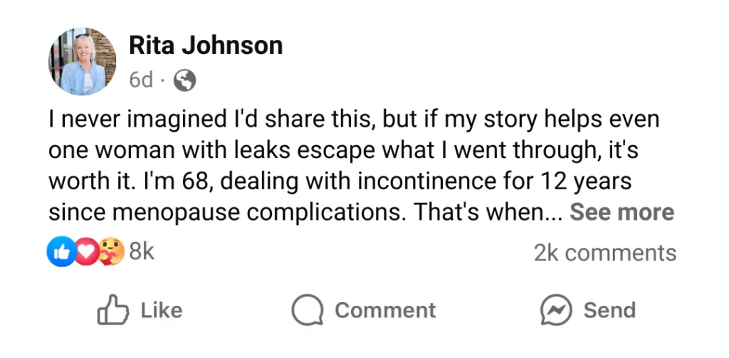 A heartfelt Facebook post shared by Rita Johnson six days ago has now over 2,024 comments and thousands of shares, with women across the United States saying Rita’s story mirrors their own quiet struggle to maintain independence while dealing with incontinence.