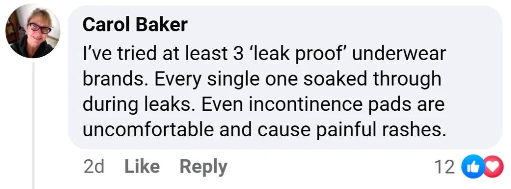 The overwhelming response to Rita’s post revealed a harsh truth: a significant number of women feel that current incontinence solutions are failing them precisely when reliability matters most.